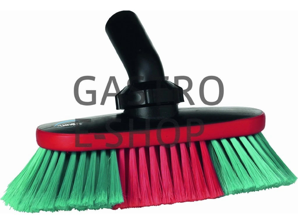 Oválný kartáč s měkkými a na konci roztřepenými štětinami pro lepší mycí účinek. Díky šikmému sklonu štětin se nástroj hodí pro čištění těžko dostupných ploch, jako například koutů, hran a nerovností. Průtokový kartáč disponuje otočným kloubem, který umožňuje nastavení čtyř různých úhlů.