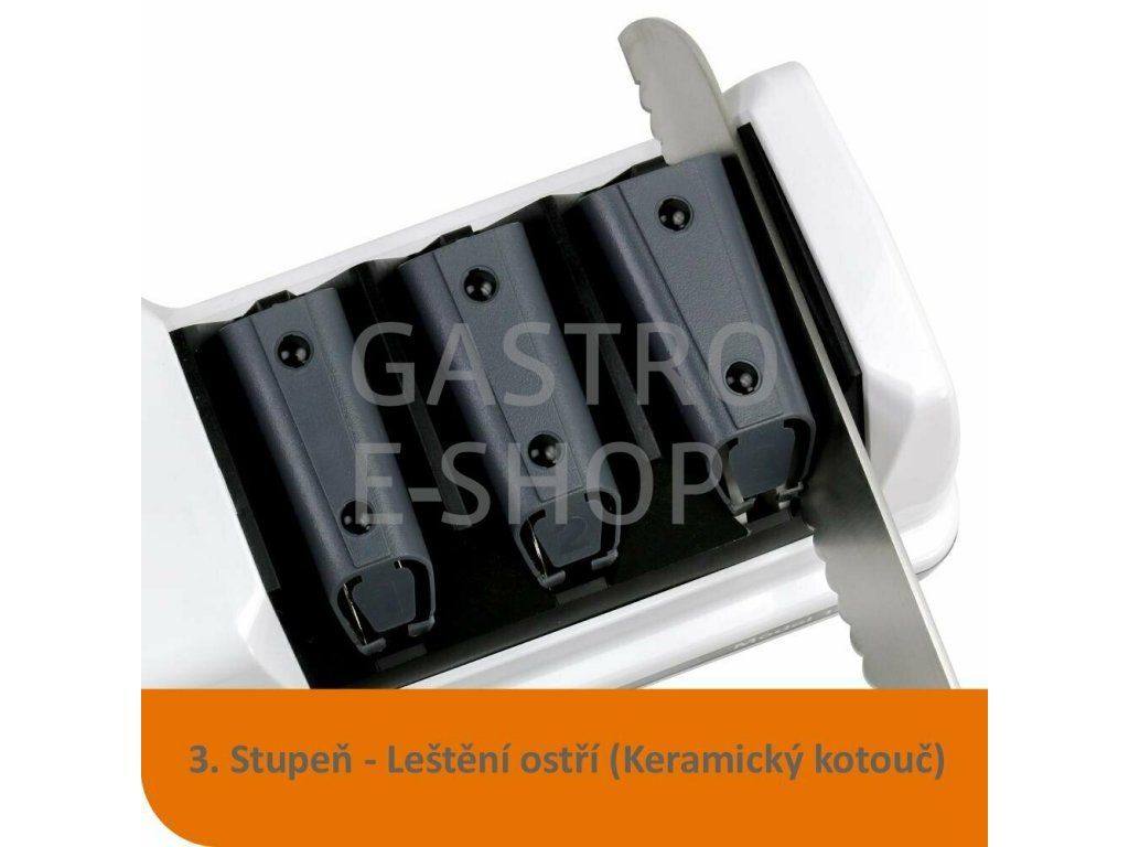 Brus na nože zvládne nabrousit rovné i vlnité ostří. Pro vlnité ostří je vhodný třetí stupeň s keramickými kotouči.