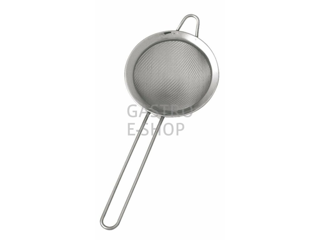 Profesionalní celonerezový cedník síto a rukojetí s možností zavěšení pro snadné přecedění látek.