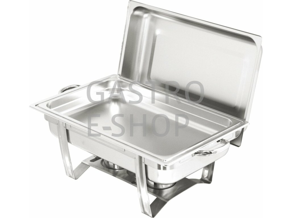 Chafing TOP GN1/1 v provedení bain-marie s šetrným ohřevem, odnímatelné víko s držákem, dvěma zásobníky na hořlavou pastu 200g (*pasta není součástí dodávky). Celonerezové provedení s možností stohování (snadné rozložení na jednotlivé díly).