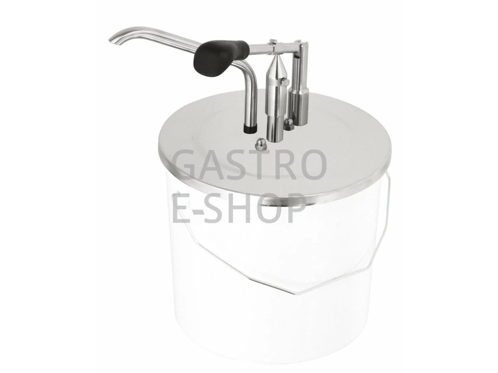 K nasazení na plastové vědro, které je součástí balení. Nerezová pumpa. Vědro o objemu 10 litrů.