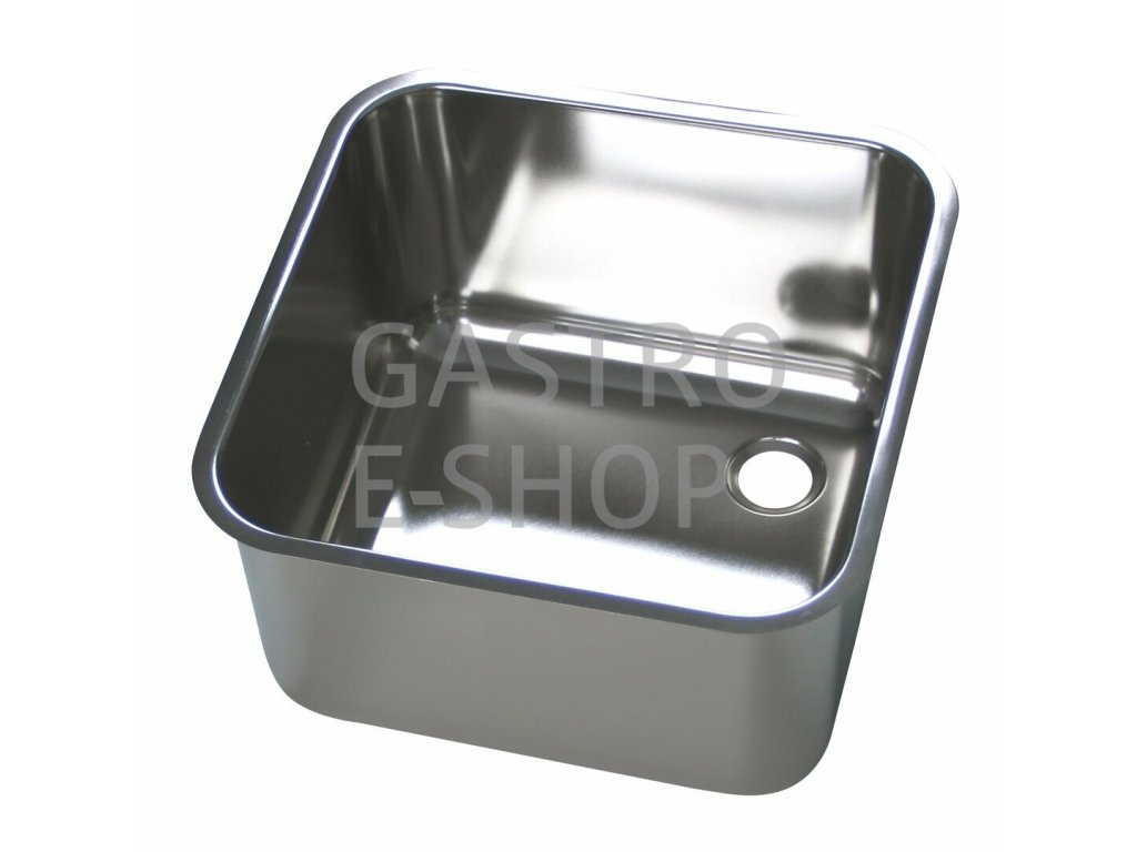 Nerezový lisovaný dřez s plochým okrajem pro vevaření do desky. Materiál AISI 304 (1.4301) s povrchovou úpravou "lesk".