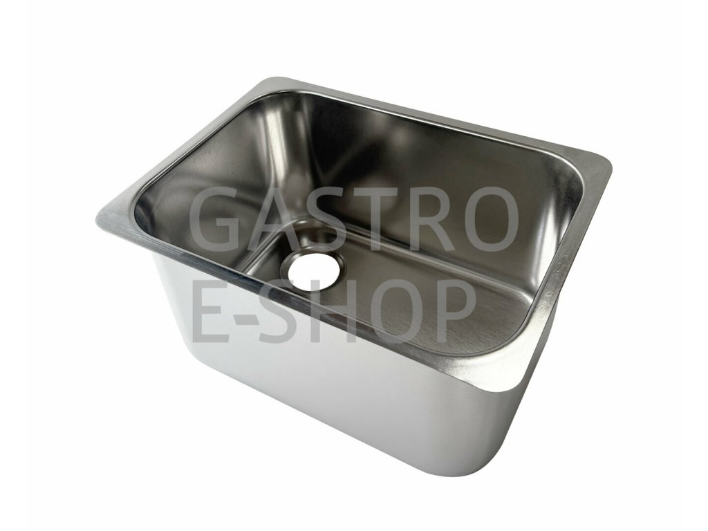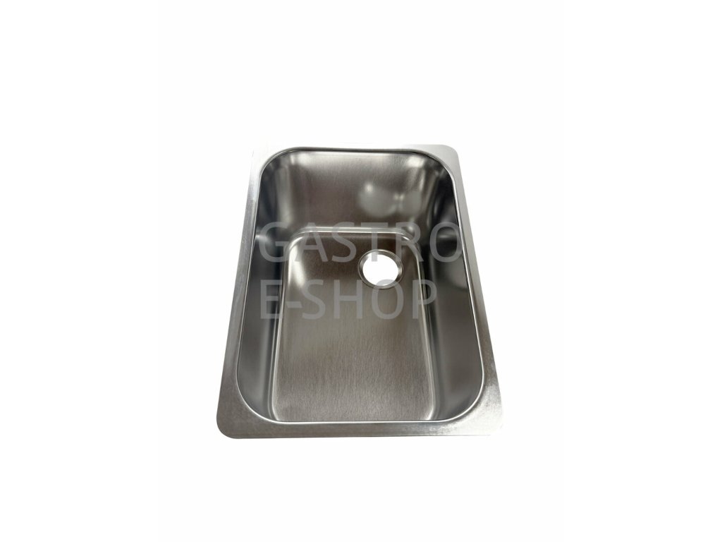 Nerezový lisovaný dřez s plochým okrajem pro vevaření do desky. Materiál AISI 304 (1.4301) s povrchovou úpravou "lesk".