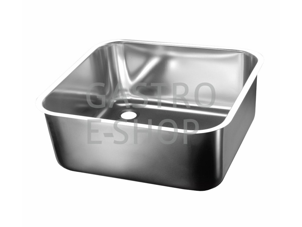 Nerezový lisovaný dřez s plochým okrajem pro vevaření do desky. Materiál AISI 304 (1.4301) s povrchovou úpravou "lesk".
