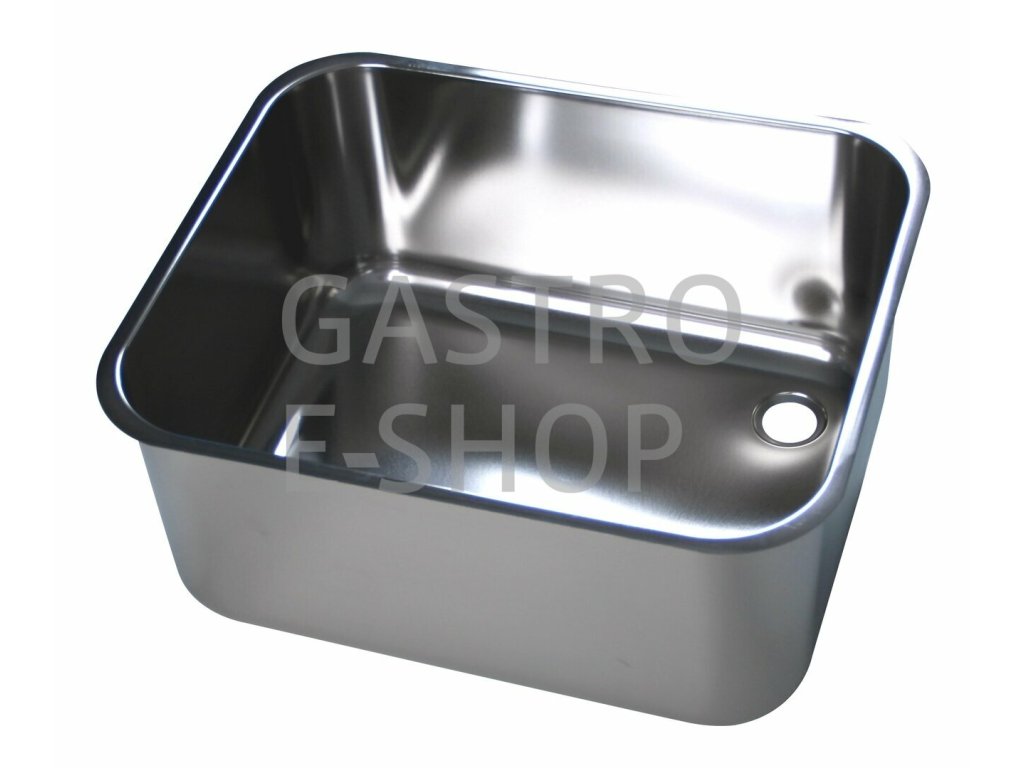 Nerezový lisovaný dřez s plochým okrajem pro vevaření do desky. Materiál AISI 304 (1.4301) s povrchovou úpravou "lesk".