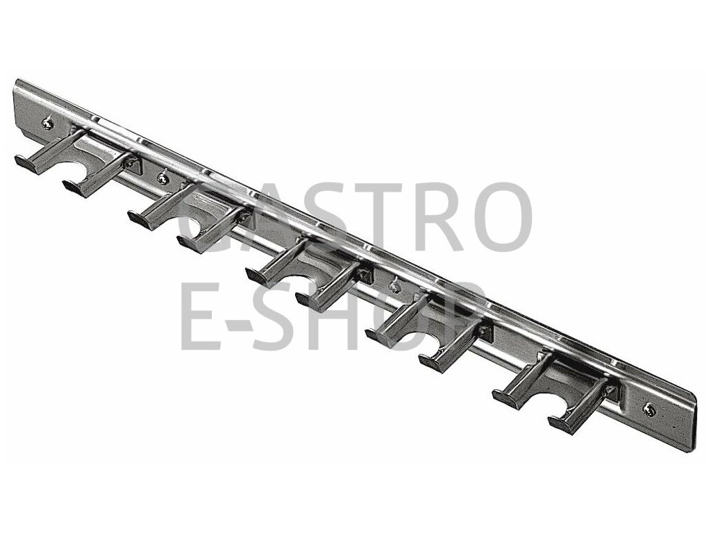 Nástěnný věšák na pizza lopaty, hrabla nebo košťata je vyroben z nerezu a dodáván ve velikostech se 3-mi až 5-ti háčky.