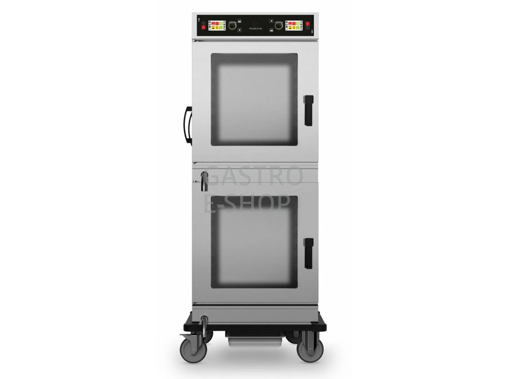 Zařízení CHC-282E (dvě komory) je určeno k nízkoteplotnímu pečení, pečení ”přes noc”, dohotovení a udržení teploty hotových pokrmůve stavu jako by byli právě nyní připraveny díky šetrnému ohřevu (statický kruhový topný systém bez ventilátoru, měkké sálavé teplo využívající vlhkosti surovin), přesné elektronické kontrole teploty (v komoře a jádru produktu s vpichovou teplotní sondou), času a systému odvlhčení komory. Snadné programovatelné řízení (LCD dotykový displej plus otočný ovladač) k využití až 200 programů s dalšími podkroky (90 receptů dodáno s MODULINE - MY CHEF). Pec je vybavena osvětlením komory a zvukovou signalizací. Dálemáte možnost ukládat až 30 různých teplot v jádru a s USB portem (příplatkově) také data HACCP až 13 dnů po 24 hodin. Nízkoteplotní zařízení nevysušuji potraviny a výrazně snižují ztráty hmotnosti, šetří energii (pouze 3+3kW), napětí pouze 230V, nepotřebuji zvlhčování a připojení na odpad. Nepřekonatelný konečný výsledek úpravy masa.