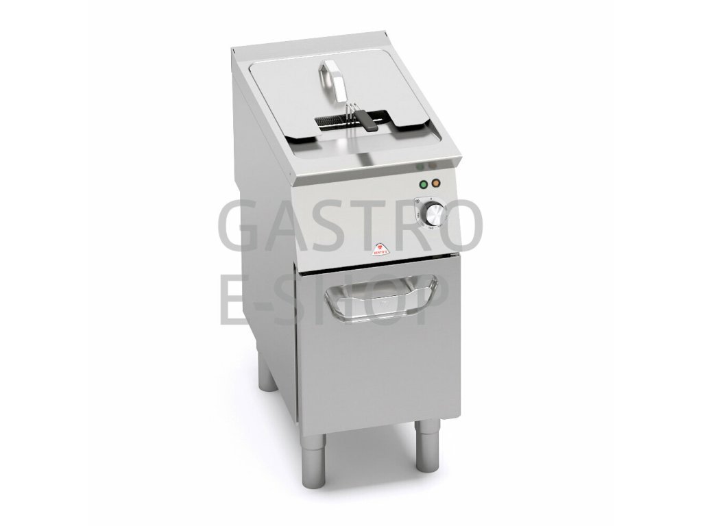 Pracovní deska z nerezové oceli AISI 304 s tloušťkou 20/10, přední a boční panely z nerezové oceli AISI 304, povrchová úprava Scotch Brite. Lisované a zaoblené umyvadlo vybavené speciálními rotačními topnými tělesy s dlouhou životností vyrobenými z nerezové oceli Incoloy; mohou dosáhnout provozní teploty v a velmi krátká doba, což zvyšuje úsporu oleje až o 60 %. Fritovací systém zachovává organoleptické vlastnosti oleje, umožňuje zdravější způsob vaření a navíc omezuje počet výměn oleje, což přináší další úspory. Systém otáčení topných těles pro snadnější čištění. Ovládání nastavené teploty až do 190°C termostatem a bezpečnostním termostatem s manuálním restartem. Průměrná doba smažení je 4 minuty. Doba předehřívání je 4-5 minut (od 20 do 190 °C). Maximální výkon 25 kg/h. Ovládání nastavené teploty elektronickým termostatem a bezpečnostním termostatem s ručním restartem. Průměrná doba smažení je 4 minuty. Doba předehřívání je 4-5 minut (od 20 do 190 °C). Maximální výkon 30 kg/h. Nastavitelné nožičky.