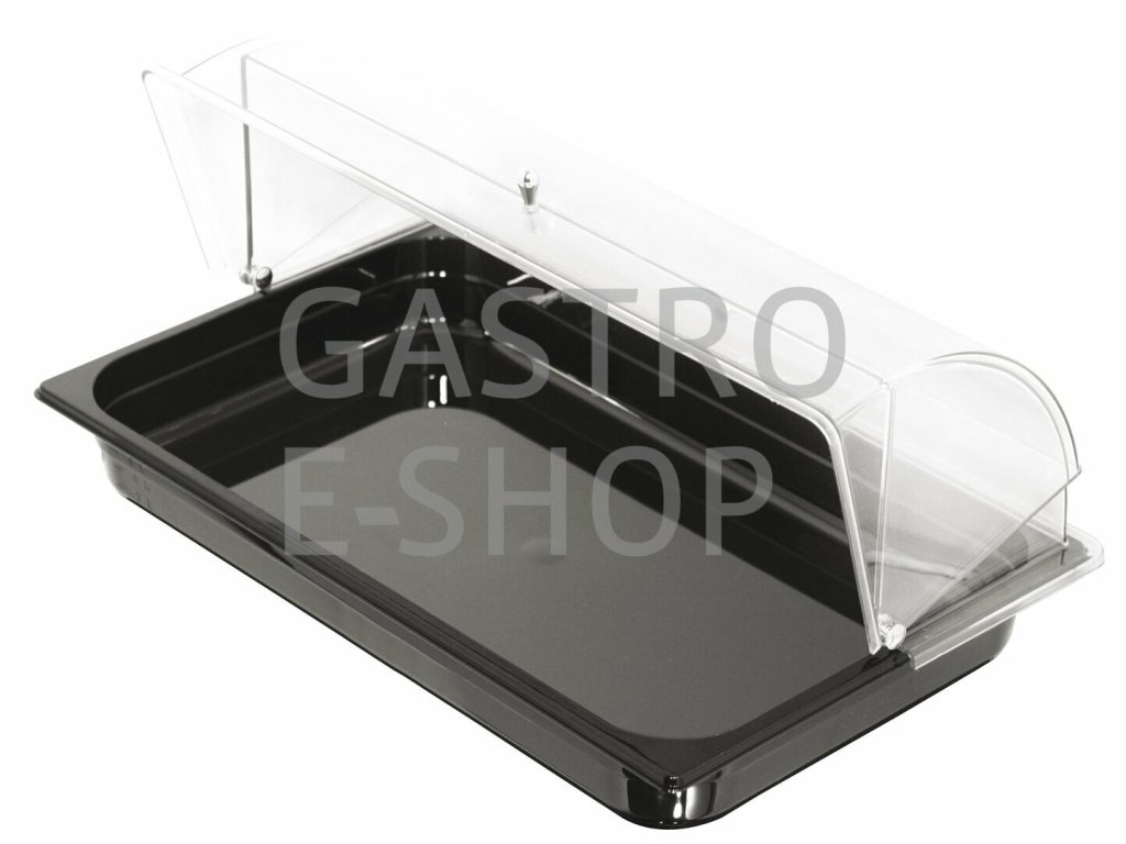 Černá polykarbonátová GN 1/1 h=65 mm a rolltop 80°. Výhodný servírovací set.