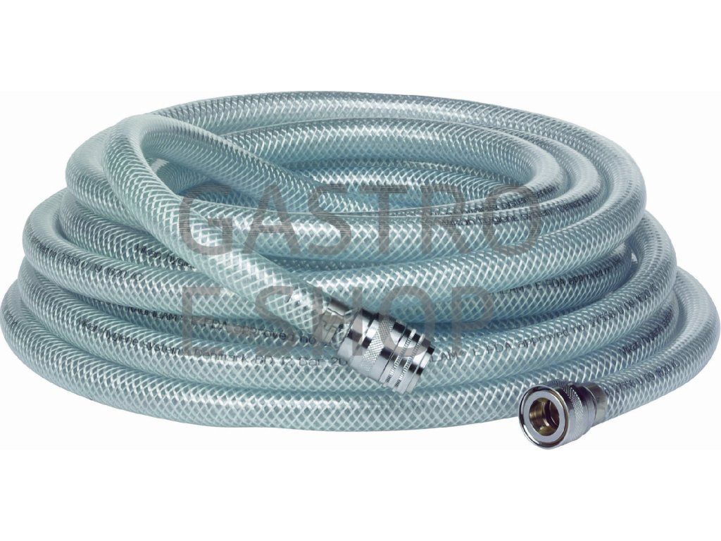 Kvalitní desetimetrová hadice na vodu do maximální teploty 40 °C s dvěma rychlospojkami 1/2, koncovkou 0700 a závitem M22xl.