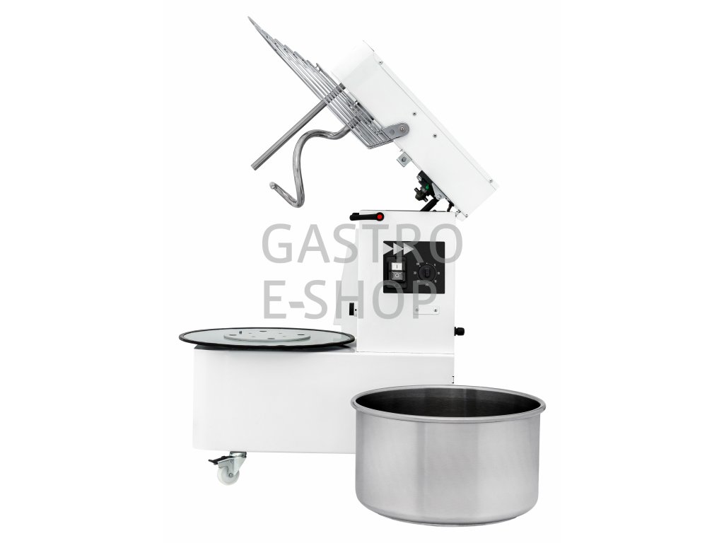 Robustní tělo stroje je z ocelového plechu s povrchovou úpravou zajišťující dlouhou životnost. Mísa, spirála, centrální hřídel i ochranná mřížka jsou vyrobeny z nerezové oceli AISI 304, která splňuje přísné hygienické standardy potravinářského provozu. Model je vybaven dvourychlostním třífázovým motorem s převodovkou v olejové lázni, což zajišťuje plynulý přenos točivého momentu, minimální hlučnost a zanedbatelnou údržbu. Spirála a centrální hřídel zajišťují rovnoměrné promísení těsta během několika minut – bez zahřívání surovin a s ideálním provzdušněním.