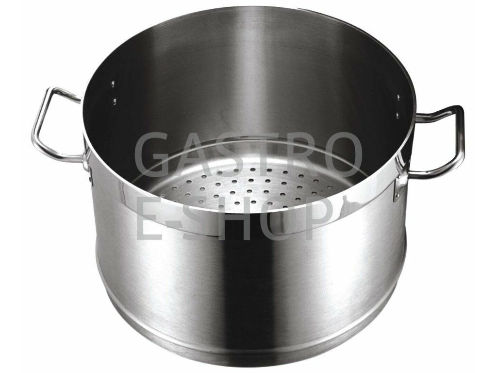 Pařákový hrnec je nezbytnou součástí vybavení každé kuchyně. Využijete ho pro ohřev klasických českých knedlíků, ale i pro přípravu ovocných kynutých knedlíků, úpravu zeleniny a přípravu velmi dietních pokrmů vařených v páře. Jemně satinovaný nerezový pařákový hrnec (18/10) lze využít i jako náhražku konvektomatu například k udržení teploty připravených příloh. Hrnec má velká ucha, což zajišťuje pohodlnou manipulaci. Nabízíme jej ve dvou velikostech, v průměru 450 a 500 mm.
