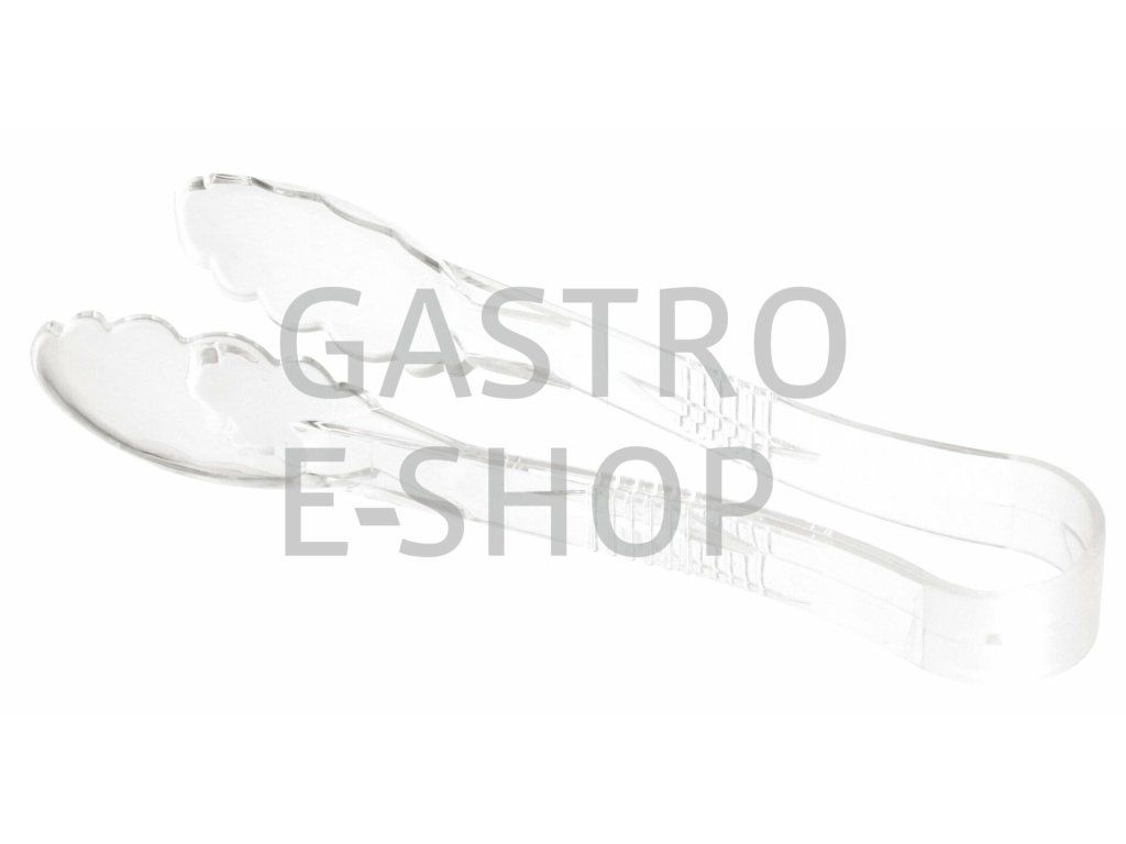 Čiré polykarbonátové servírovací kleště dodávané ve dvou rozměrech 230 a 300 mm.