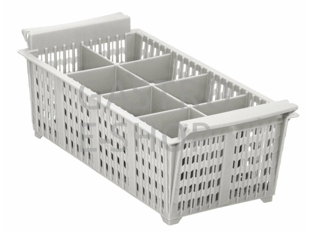 Koš do myček na příbory. Celkem 8 přihrádek a madla na kraji koše.