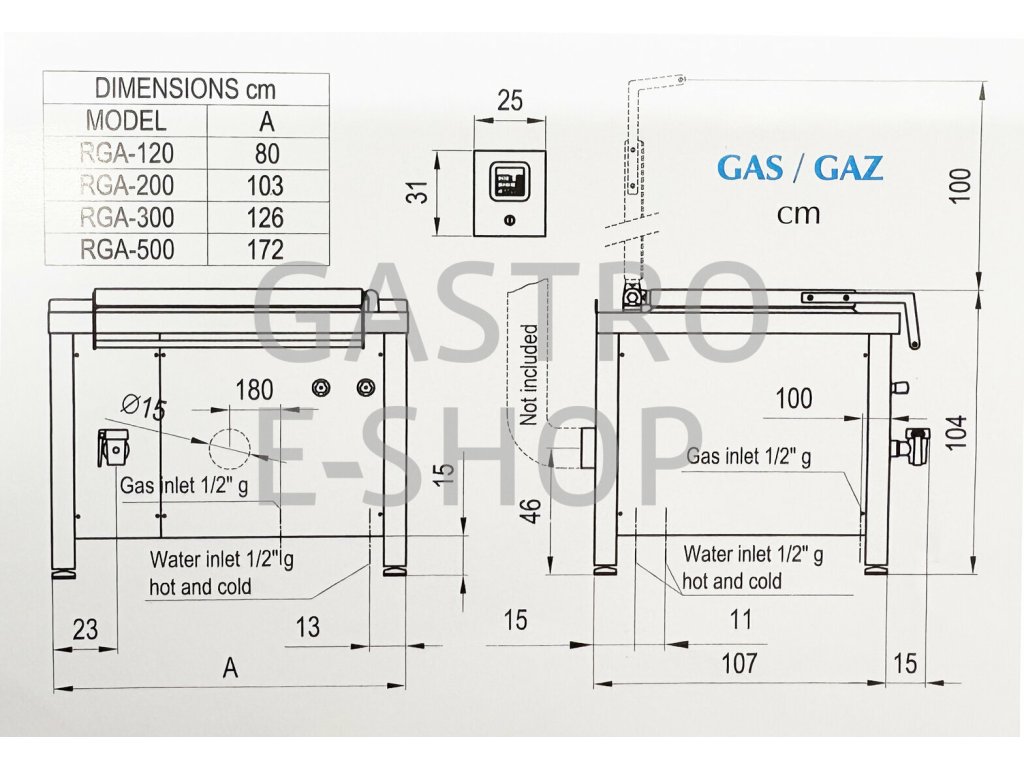 - Přívod plynu: G 3/4"