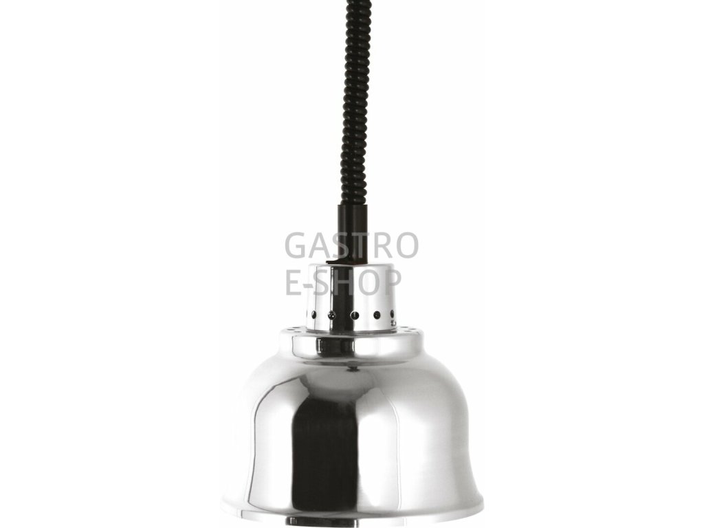 Závěsná lampa v provedení chrom. Ideální do prodejních prostor. S infra lampou nasvítíte pokrmy a udržíte je déle teplé. Atraktivní vzhled nasvícených produktů, ideální pro přímý prodej pokrmů TO-GO jako například pizza, masové pokrmy nebo i pasta.
