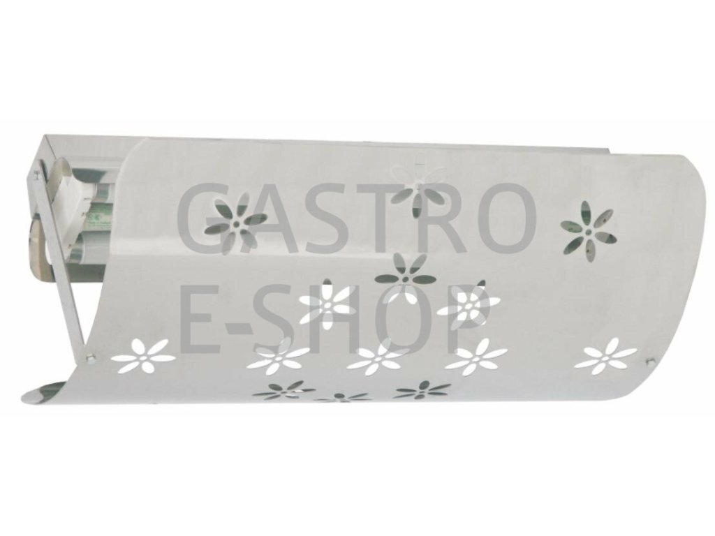 Provedení: pro zavěšení na stěnu i do prostoru (uvedený model splňuje nejpřísnější HACCP předpisy- samolepící fólie trvale zachytí 100% omráčeného hmyzu). Zářivka 2 x 15W, nerezové provedení.