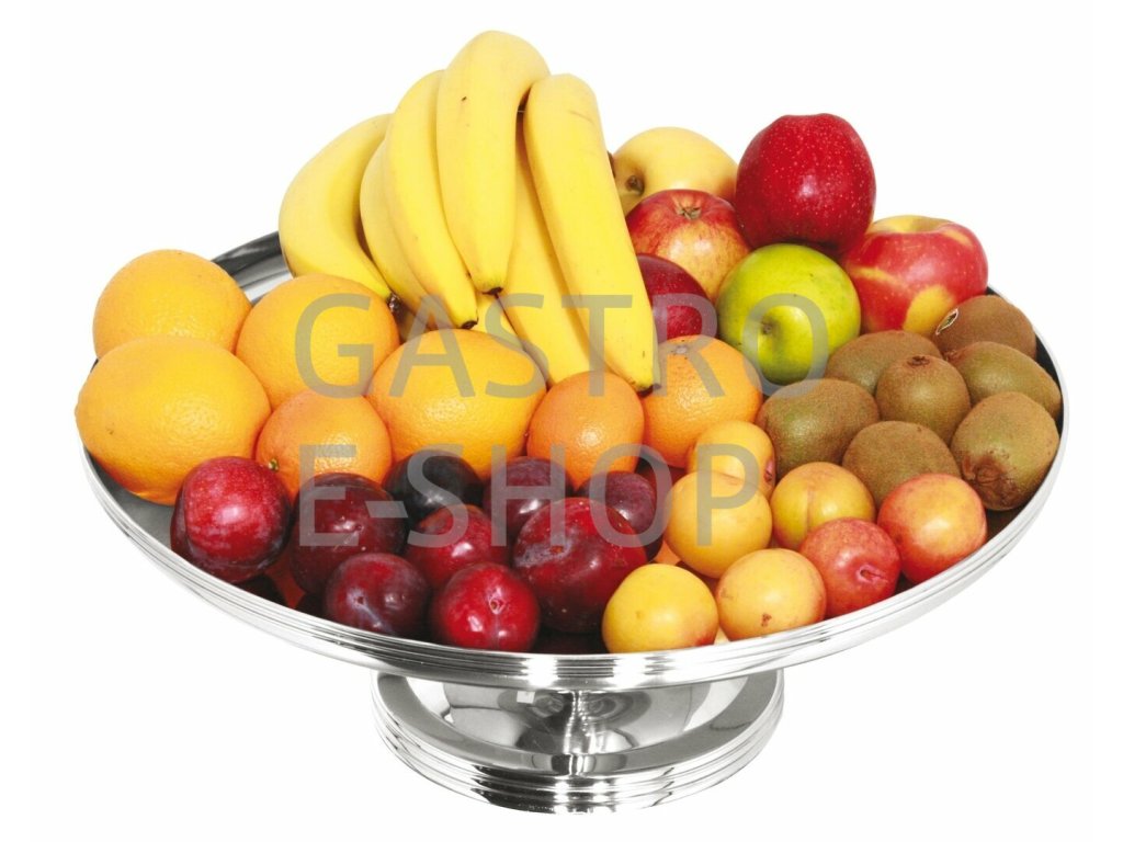 Velká nerezová mísa s podstavou a průměrem mísy 45 nebo 50 cm. Celková výška 19 cm.