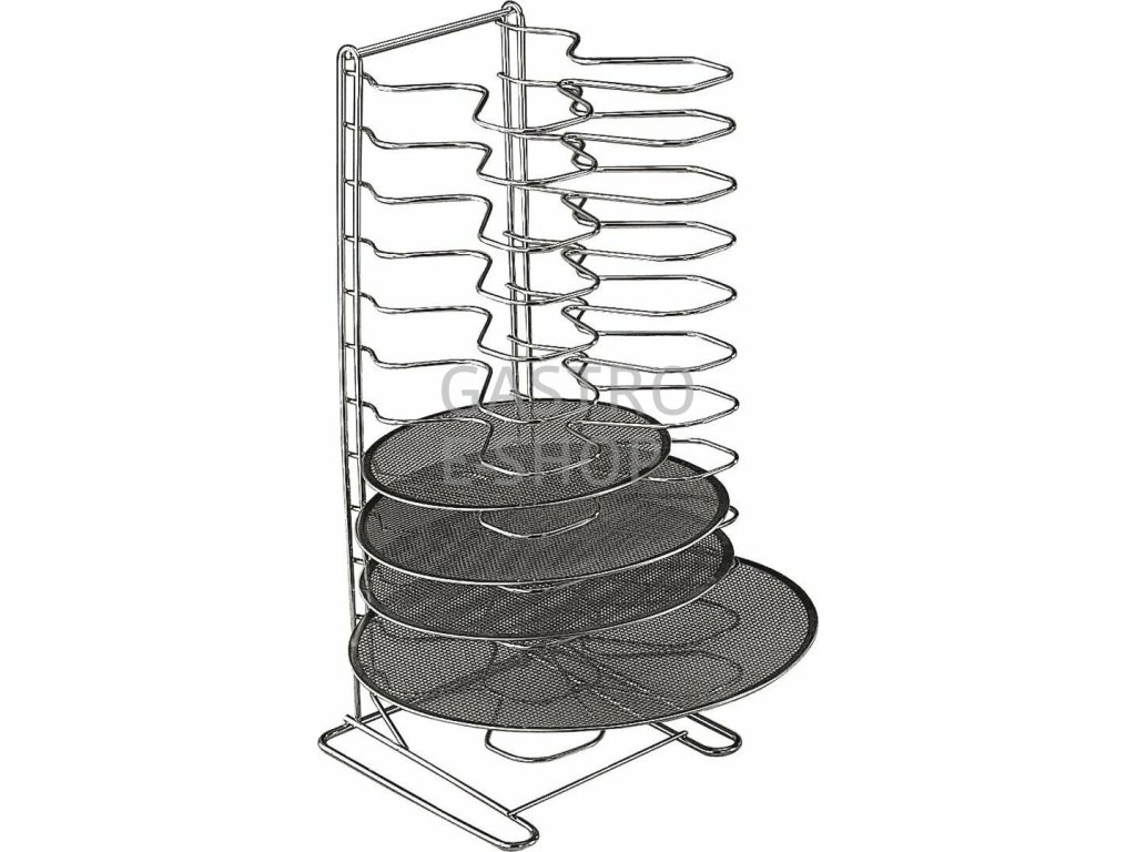 Vyberte si stojan na pečící plechy a mřížky s dvanácti zásuvy a k němu nerezové nebo hliníkové pizza mřížky.