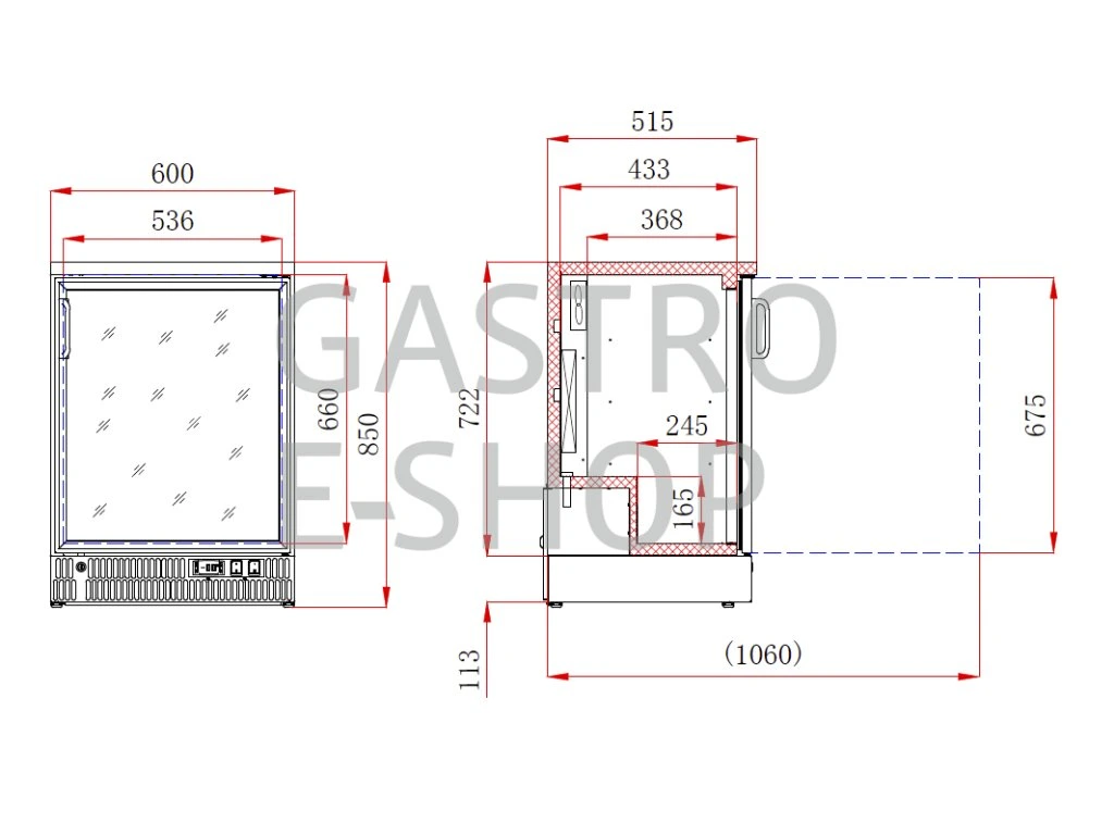 - Výška pouze 850mm (včetně pracovní desky) umožňující vestavění do baru (nutno zachovat průduchy vzduchu).