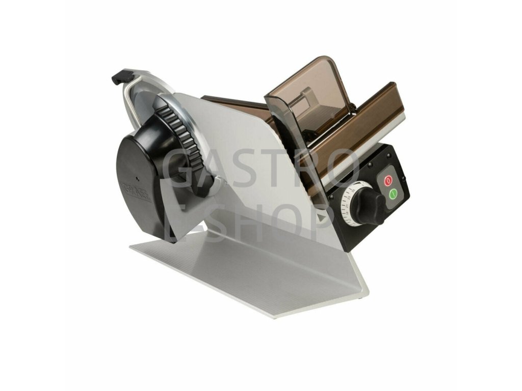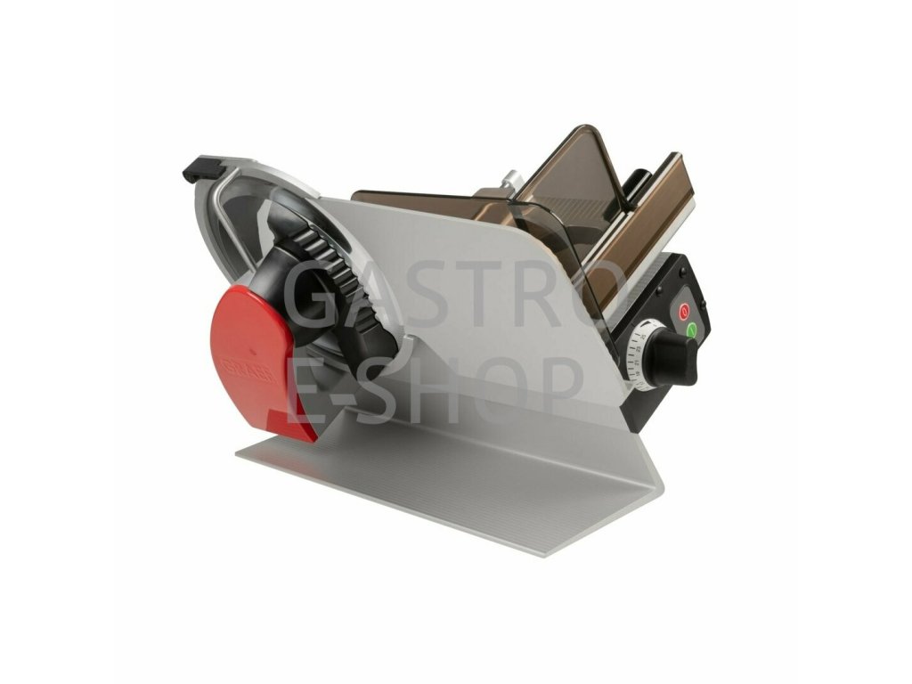 Manuální nářezový stroj pro profesionální použití Graef linie CONCEPT 25 S na porcování a krájení různých produktů (uzenin, mas, sýrů atd.). Pohon nářezového stroje zajišťuje výkonný 300 W motor (tichý, účinný, dobře chlazený hybridní pohon (šneková převodovka pohánějící klínový řemen) pro efektivní a bezúdržbový přenos energie i při nepřetržitém provozu). Důmyslný "L" design umožňuje šikovnou kombinaci a těsné seskupení s úložnými tácky, krájecími deskami. Konstrukce zabezpečí nejlepší výsledky při krájení. Vysoký hygienický standard a komfort při čistění. Maximální řezná kapacita s minimální stopou (nastavení tloušťky řezu od 0 až do 20 mm). Šikmé uložení vozíku a opěrné deky nářezového stroje, barva odolných plastů: černá (standardní), na objednávku v barvě (červená, bílá).