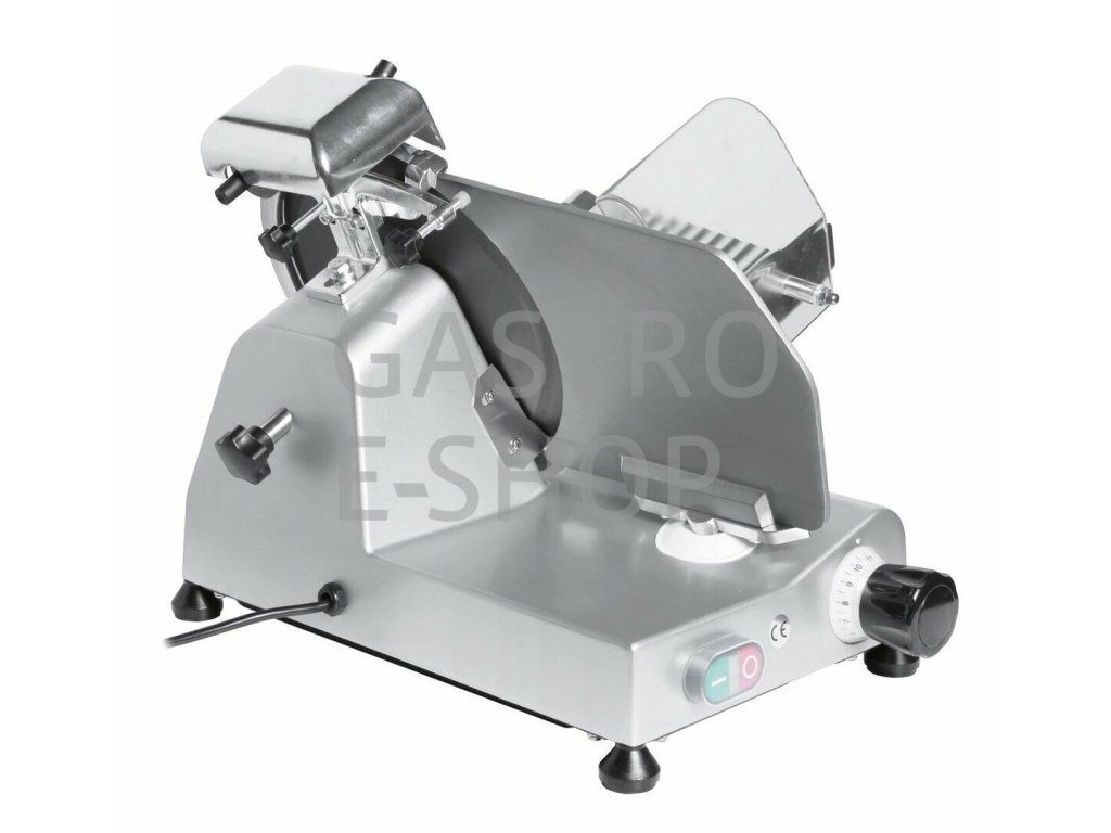 a snadné posouvání a dokrajování uzeniny. Nářezový stroj je vyroben z hliníkové slitiny s odolnou a hygienickou eloxovanou povrchovou úpravou.