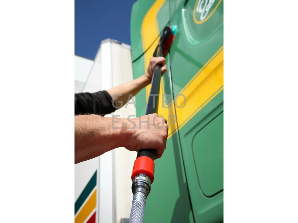 Pohodlná rukojeť usnadňuje práci a rychlospojka pro napojení na hadici. Maximální tlak, vody 6 barů.