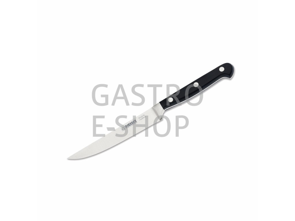Kvalitní kovaný nůž Giesser s nýtovanou plastovou rukojetí a tvarem pro krájení steaků.