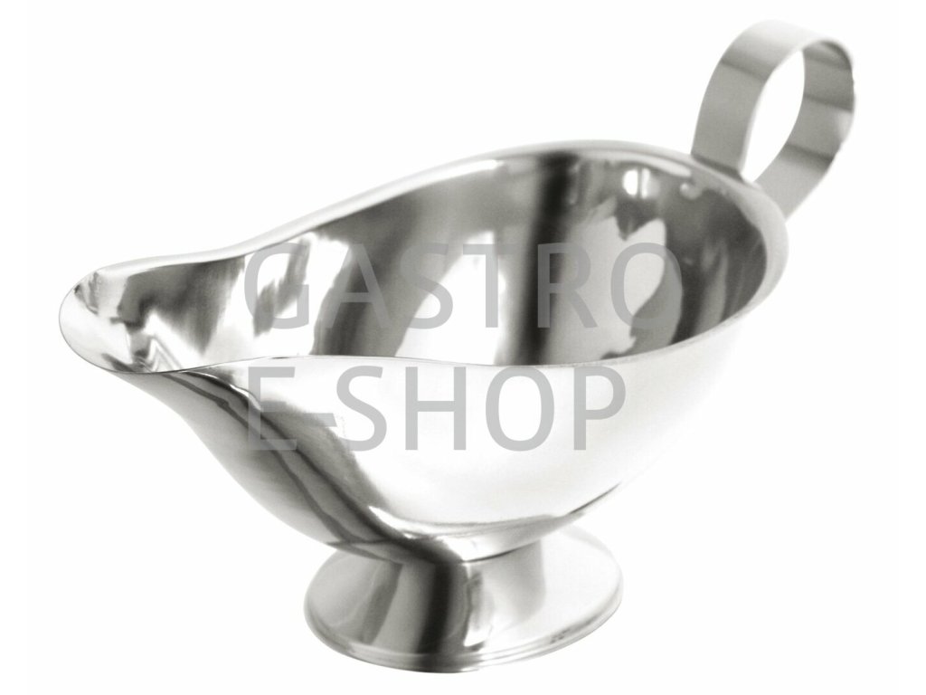 Nerezové servírovací omáčníky s uchem. Varianty o objemech 0,1; 0,2; 0,3; 0,4 a 0,5 l.