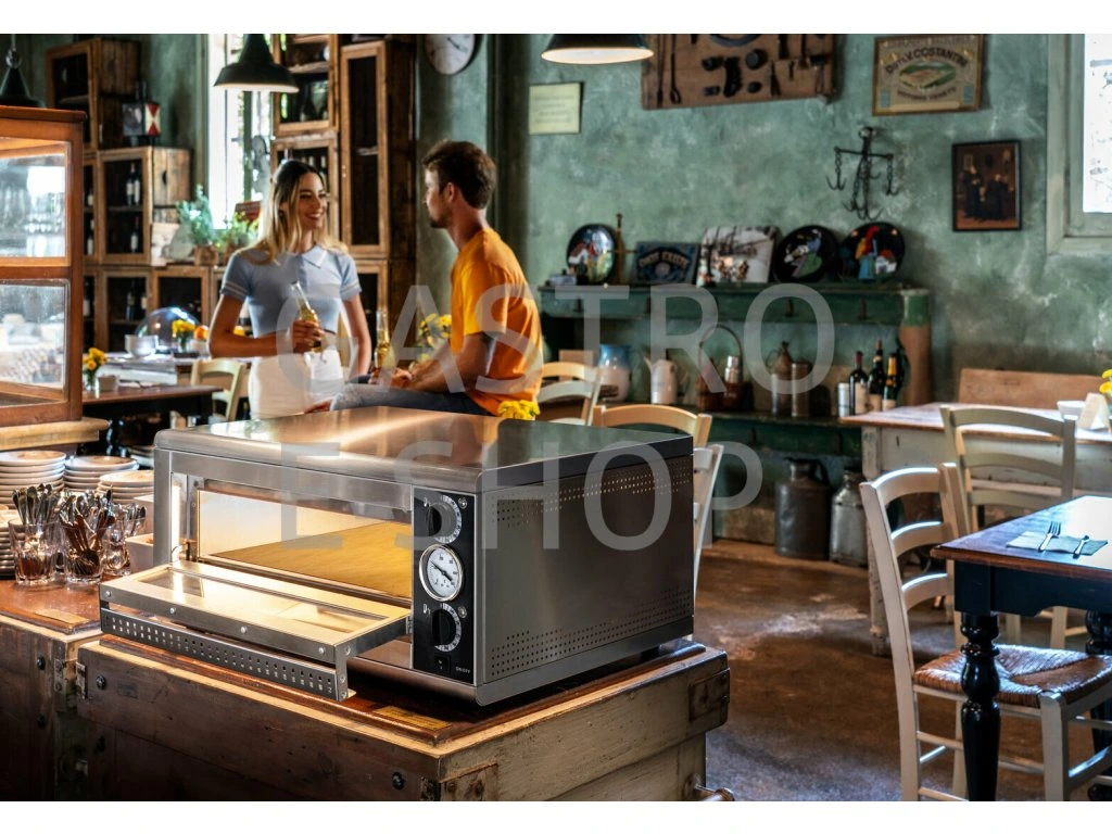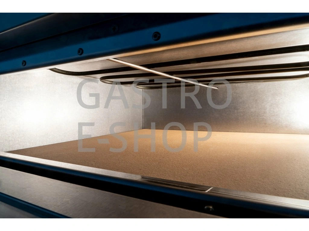 Trouba má vynikající vybavení: dvojitý termostat, žáruvzdorná kamenná deska, standardní teploměr, velké okno.