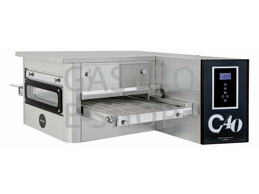 nastavení času zapnutí/vypnutí, rychlosti posuvu pásu a nastavení teploty horních a spodních těles. Úspora až 30% energie oproti tradičním „statickým” pizza pecím. Pece je možno využít kromě pečení pizzy, také pro pečení chleba, plochých těst, pizza tyčinek „grissini”, ale i pro přípravu zeleniny a mnoho dalších gastronomických specialit. Prosklené dveře umožňují kontrolované pečení a snadný přístup pro čištění komory.