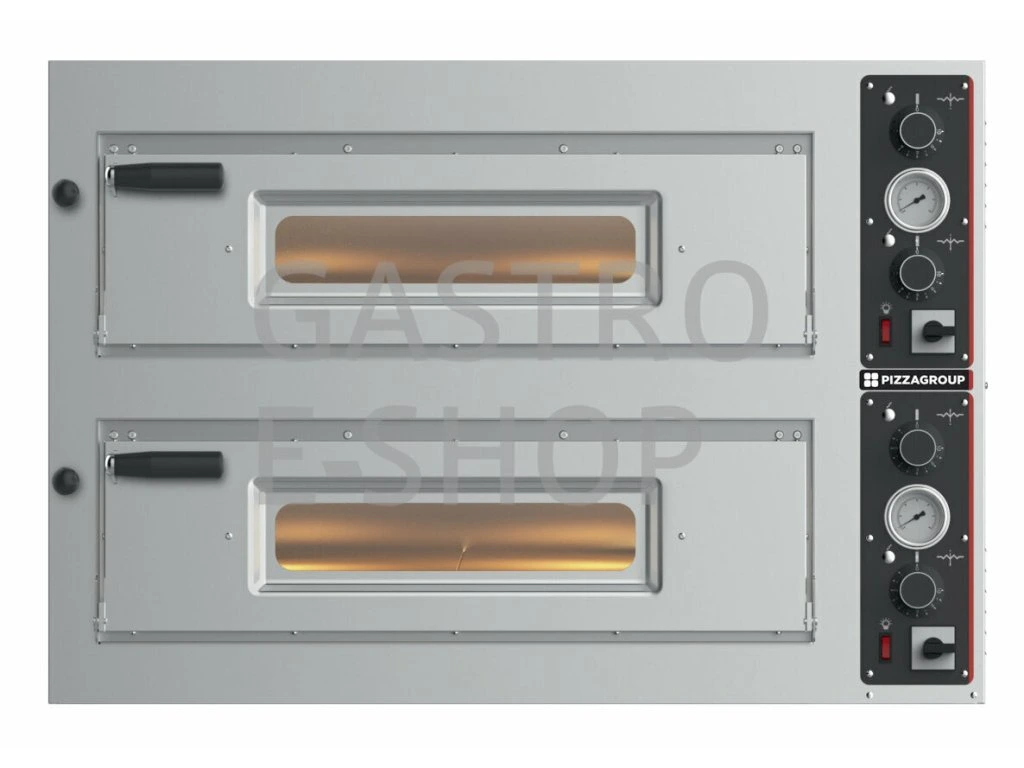 Dvoukomorová pizza pec ENTRY MAX 8 (až 8 plechů pr.34cm). Modely Entry Max jsou nejprodávanější elektrické modely pizza pecí. Snadné a přehledné mechanické ovládání umožňuje individuální nastavení výkonu spodních a horních těles v komoře. Pece jsou vybaveny analogovým teploměrem (termostat do 450°C).