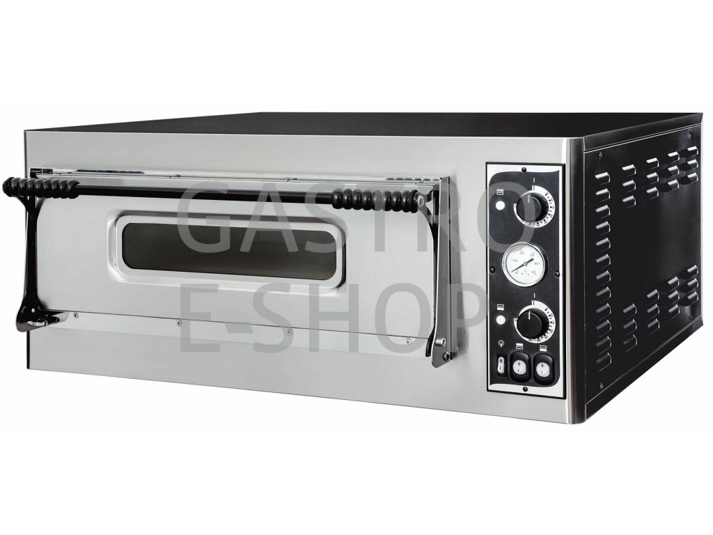 Jednokomorová elektrická pizza pece řady BASIC. Snadné a přehledné mechanické ovládání umožňuje individuální nastavení výkonu spodních a horních těles v komoře případně vypnutí spodního, nebo horního tělesa. Pece jsou vybaveny analogovým teploměrem,a termostatem 50-450°C, vnitřním osvětlenímkomory. Provedení s nerezovým čelem, kvalitní izolací a opláštění v laku.