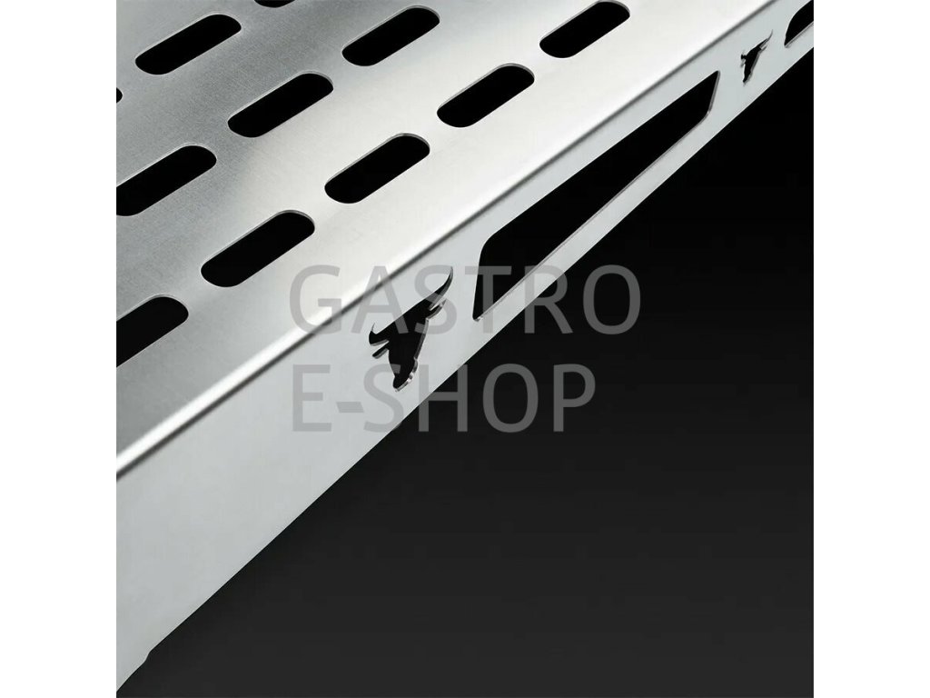 Díky robustní konstrukci z kvalitní nerezové oceli je police ideální pro ukládání jednotlivých kusů masa, uzenin, sýrů nebo dalších delikates v horizontální poloze. Zároveň výrazně zlepšuje vizuální prezentaci produktů ve vitríně.