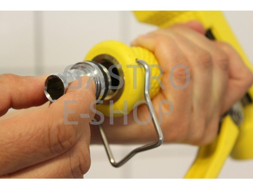 Pro propojení rozstřikovače s bubnem (hadicí vybavenou rychlospojkou) je nutné dokoupit rychlospojku se šroubením (kód: 570502204675).