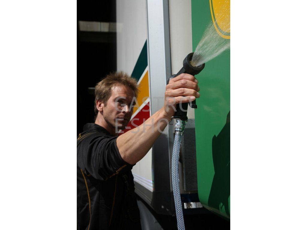 Rozstřikovač tlakové vody z nerezové oceli, mosazi a gumy. Nástroj má mosaznou hadicovou koncovkou. Hodí se pro čištění strojů, podlah, stěn a pracovních povrchů. Rozstřikovač je konstruovaný na tlakovou vodu až 24 bar a teplotu 95 °C.