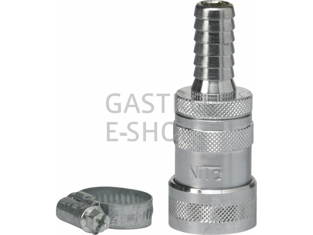 1/2" spojka "Q" s hadicovou vsuvkou 1/2" a uzavíracím ventilem při odpojení hadice. Hadicová svorka je součástí dodávky. Nízký obsah olova.