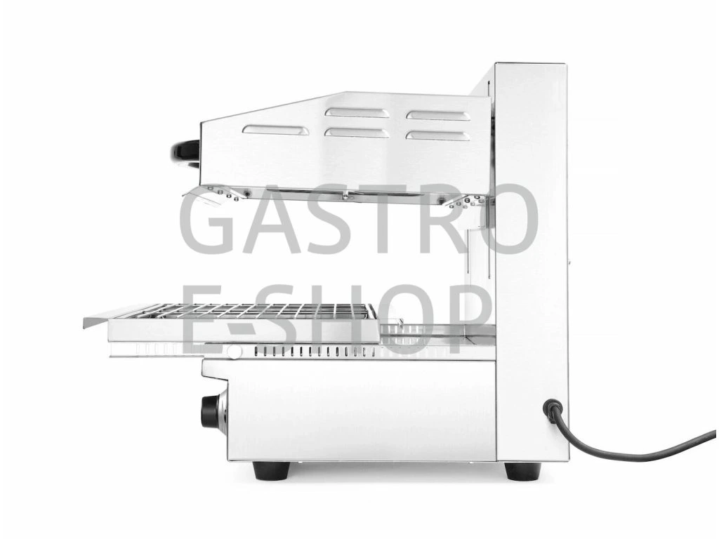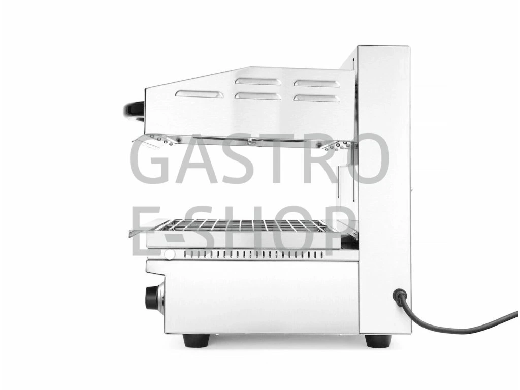 - Perfektní grilování: Salamander vyniká plynule nastavitelným termostatem až do teploty 300 °C, což znamená, že můžete připravit pokrmy s přesně stanovenou teplotou pro dokonalou chuť a konzistenci.