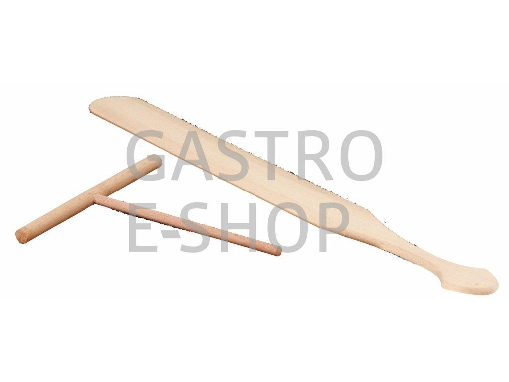 Dlouhá dřevěná špachtle např. pro přípravu palačinek na plotně.