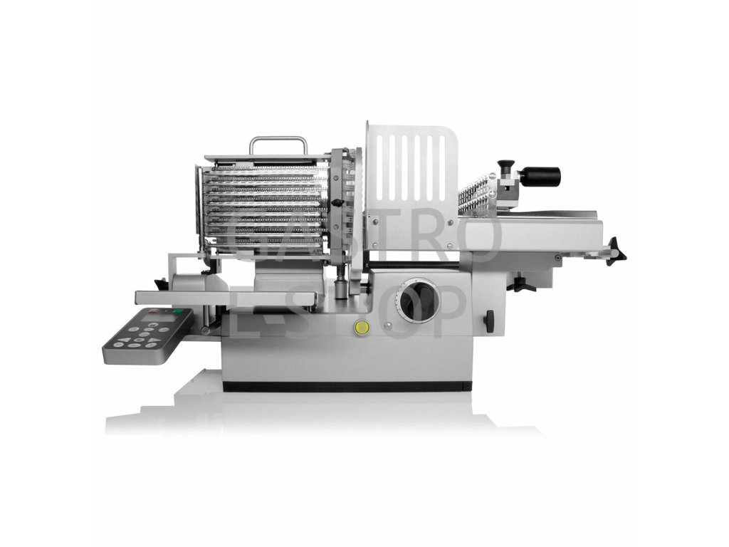 Profesionální plně automatické nářezové stroje GRAEF, řady VA 802 - (400V) v hliníkovém provedení se speciálním keramickým nepřilnavým povrchem CERA3 (kompletní opláštění těla stroje včetně vozíku, nože a krytu nože). Všechny komponenty lze jednoduše demontovat bez nutnosti speciálního nářadí. Pohon stroje je zajišťován šnekovým převodem s výkonným bezúdržbovým vzduchem chlazeným motorem. Ke stroji je dodáváno speciální brusné zařízení. Přesně nastavitelná síla řezu 0,5 až 10 mm. Vozík pro uchycení produktu s odlehčeným pojezdem usnadňuje krájení. Bezpečné voděodolné ovládání s piezzoelektrickými spínači. Podstava stroje je vybavena protiskluzovou gumou zamezující nechtěnému pohybu stroje a usazování nečistot pod zařízením. Zařízení jsou vhodná pro krájení uzenin, masa včetně sýrů díky provedení CERA3 (minimalizuje tření a namáhání stroje). Zjednodušené programování skládání plátků vertikálně, horizontálně, do řádků, komínku a kruhu s možností variabilní změny. Ovládací panel s grafickým displejem. Možnost nahrání datumu servisních kontrol s upozorněním.