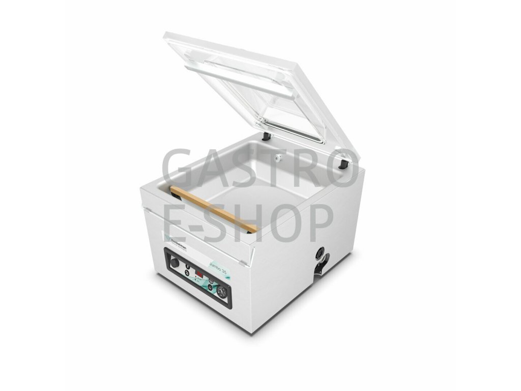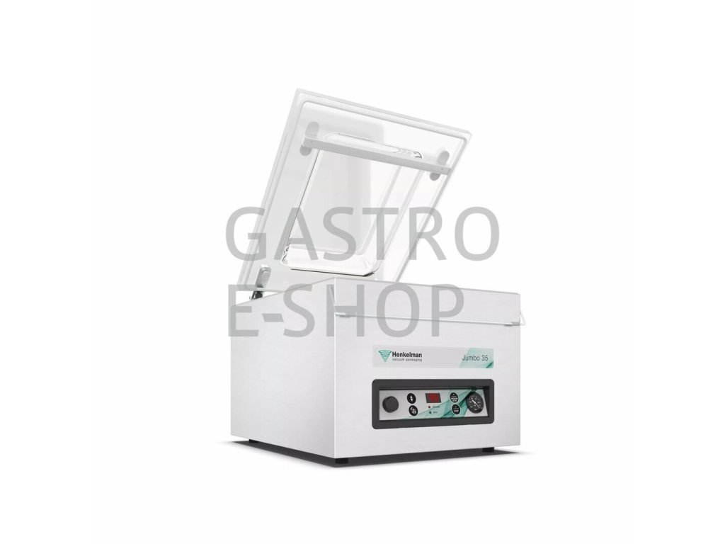 Prodlužte trvanlivost masa, drůbeže, ryb, sýrů, zeleniny a dalších potravin včetně tekutin. Ochraňte je před působením vnějších vlivů. S výkonnou, profesionální a spolehlivou jednokomorovou vakuovou baličkou Jumbo 30 od holandské firmy Henkelman to půjde snadno. Vakuová komora se zaoblenými rohy má délku komory 370 mm, šířku lišty 345 mm (max. šířka sáčku) a výšku komory 150 mm a dokonale uchová trvanlivost produktů.