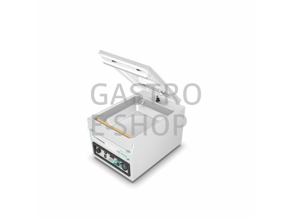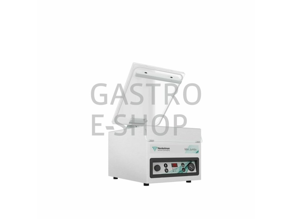 Zařízení slouží k vakuovému balení výrobků (produktů) do vakuových sáčků. Prodlužte trvanlivost masa, drůbeže, ryb, sýrů, zeleniny a dalších potravin včetně tekutin. Ochraňte je před působením vnějších vlivů. S profesionální vakuovou baličkou Jumbo Plus od holandské firmy Henkelman to půjde snadno. Jednokomorová programovatelná balička v robustním celonerezové provedení s lisovanou vanou se hodí pro provozy různých zaměření. Model s časovým řízením vakua a lišty, s rovným průhledným víkem a hloubkou komory s víkem 85 mm slouží k vakuovému balení pokrmů a potravinářských výrobků do vakuových sáčků.