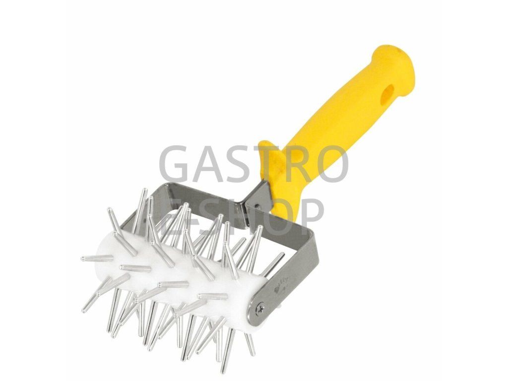 Děrovací váleček rovnoměrně propíchá těsto a zabrání tvorbě bublin na pizze vznikajících při pečení.