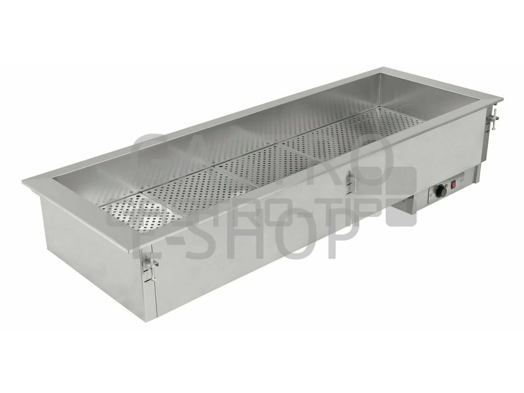 Vestavná teplá udržovací vana (statický suchý ohřev) v celonerezovém provedení s mechanickým termostatem a regulací (30° až 90 °C) s centrálním