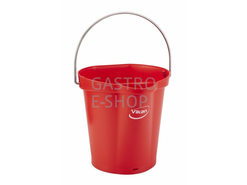 Odolné 6 litrové vědro s nerezovou rukojetí, úchytem ve dně, vnitřními kalibračními měrkami různých jednotek a výlevkou pro směrování kapaliny do jednoho proudu. Výrobek je určený pro mytí nebo skladování přísad. Zadní plocha vědra slouží pro zavěšení do nástěnného držáku Vikan 16200.