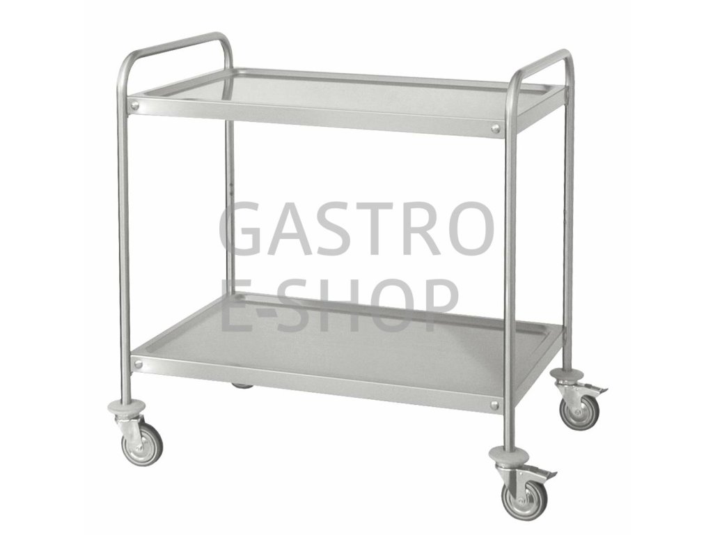 Masivní servírovací vozíky v nerezovém provedení se čtyřmi odolnými otočnými kolečky (2x bržděná). Police mají prolisované zvednuté okraje, pro lepší zabezpečení nádobí při přepravě. Vozíky jsou dodávány v rozebraném stavu, balené v kartonu včetně montážního materiálu. vozíky jsou v robustním provedení s vyztuženými a zpevněnými rohy (vozík již není třeba zpevňovat svárem).